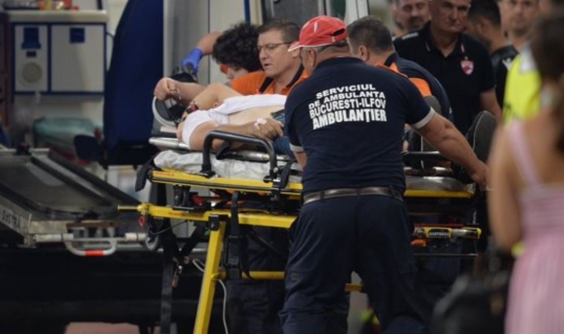 Romanya Ligi'nde oynanan Dinamo Bükreş-Craiova maçında izleyenleri endişelendiren bir an yaşandı.