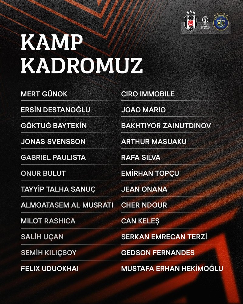 UEFA Avrupa Ligi'ndeki temsilcilerimizden Beşiktaş, 5. hafta maçında Maccabi Tel Aviv ile karşılaşacak. Macaristan'da oynanacak karşılaşma öncesi siyah-beyazlıların kamp kadrosu açıklandı.