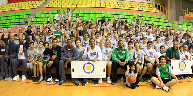 Taksim'deki Gezi Parkı'nda düzenlenen organizasyona, NBA'in efsanevi basketbolcularından Robert Horry ve Sam Perkins'le birlikte Boston Celtics'in dansçı kızları ile maskotu ''Luck'' da katıldı.
