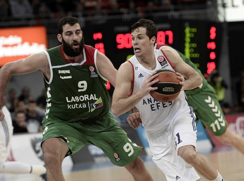 Avrupa Ligi'nde Anadolu Efes'in düşüşü devam ediyor. Üst üste iki maçını kazanan temsilcimiz, B Grubu'ndaki 4. maçında Laboral Kutxa'ya uzatmada teslim oldu: 90-92. İlk yarıyı 33-28 önde kapayan Efes, Brown'un son saniye basketiyle maçı uzatmaya taşıdı: 81-81. Ancak Cedi Osman'ın 3'lüğü girmeyince maçı kaybetti.