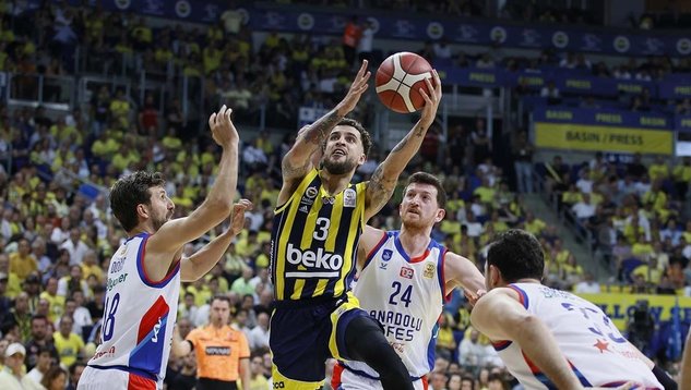Basketbol Süper Ligi playoff final serisi 4. maçında F.Bahçe, bugün evinde A.Efes'le saat 20.30'da karşılaşacak. Seride 2-1 önde olan sarı-lacivertliler kazanırsa 11. şampiyonluğunu ilan edecek. Deplasmanda ilk iki maçı 85-74 ve 101-70'lik skorlarla kazanan Fenerbahçe, evindeki son maçta Larkin'in son saniye basketiyle 82-81 yenildi. A.Efes kazanırsa serinin 5. ve son maçı, 14 Haziran Cuma günü saat 20.30'da Sinan Erdem Spor Salonu'nda oynanacak.