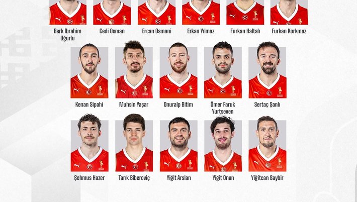 A Milli Erkek Basketbol Takımı'nın FIBA 2027 Dünya Kupası Elemeleri'nde Bosna Hersek ve İsviçre ile yapacağı maçların aday kadrosu belli oldu. C Grubu'nda mücadele eden ay-yıldızlılar, çalışmalarına bugün Başantrenör Ergin Ataman yönetiminde başlayacak. TBF'den yapılan açıklamada şu oyuncuların davet edildiği belirtildi: "Ercan Osmani, Erkan Yılmaz, Şehmus Hazer (Anadolu Efes), Furkan Haltalı, Kenan Sipahi (Bahçeşehir Koleji), Berk İbrahim Uğurlu, Yiğit Arslan (Beşiktaş), Onuralp Bitim, Tarık Biberovic (Fenerbahçe Beko), Muhsin Yaşar (Galatasaray), Yiğit Onan (Manisa), Furkan Korkmaz, Yiğitcan Saybir (TOFAŞ), Sertaç Şanlı (Dubai), Cedi Osman, Ömer Faruk Yurtseven (Panathinaikos)."