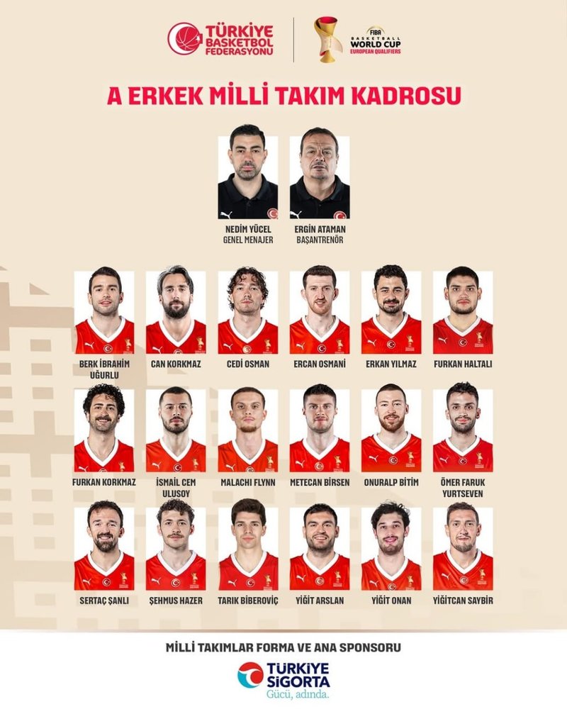 Başantrenör Ergin Ataman yönetimindeki milli takımın aday kadrosunda şu isimler yer alıyor: