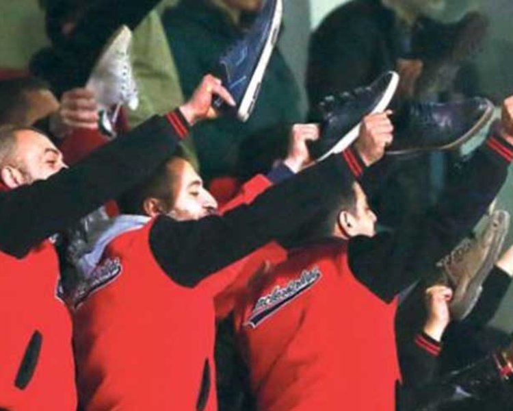 Ankara'da oynanan karşılaşmada bazı Gençlerbirliği taraftarları, ayakkabılarını çıkararak Beşiktaş Teknik Direktörü Şenol Güneş'i protesto etti.