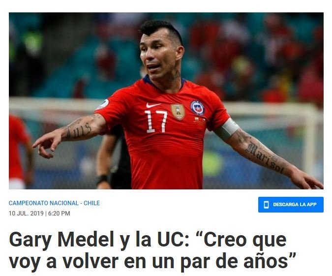 "Sanırım birkaç yıl içerisinde Universidad Catolica'ya döneceğim" diyen Medel, sözlerini şöyle sürdürdü;