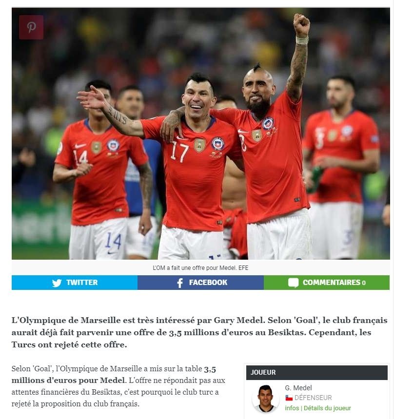 Fransa Ligue 1 takımlarından Marsilya'nın Beşiktaşlı Gary Medel'e olan ilgisi sürüyor. Goal'de yer alan habere göre Fransız ekibi son olarak siyah-beyaz kulübe Şilili futbolcu için 3.5 milyon Euro bonservis bedeli önerdi.
