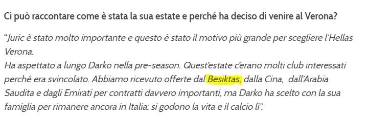 Darko'nun Hellas Verona'ya gelmesindeki en önemli neden teknik direktör Juric. Oyuncuyu sezon başında isteyen çok kulüp vardı. Beşiktaş, Çin ve Arbistan'dan önemli teklifler aldık çünkü bonservisi elindeydi. Anck Darko ve ailesi İtalya'da kalmayı seçti.