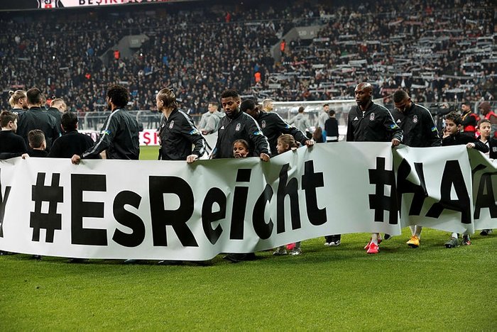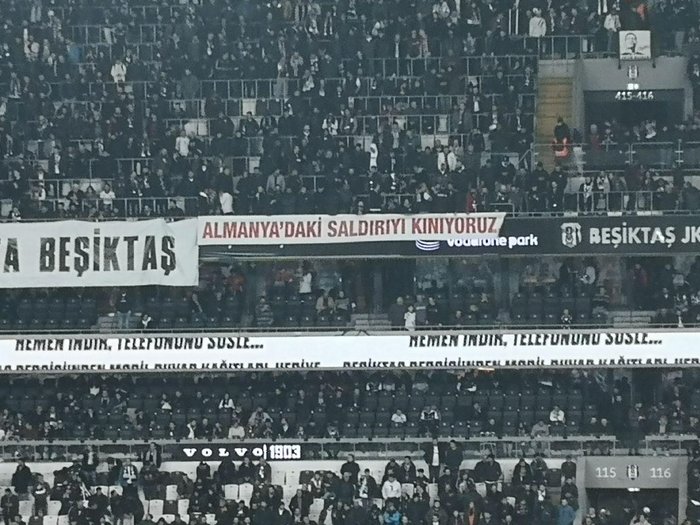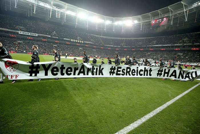 Beşiktaş taraftarları tribünlerde "Almanya'daki kardeşlerimiz yalnız değildir", "Irkçılığa karşı omuz omuza" ve "Almanya'daki saldırıyı kınıyoruz" yazılı pankartlar açarak 5'i Türk 9 kişinin hayatını kaybettiği ırkçı terör saldırısına tepki gösterdi.