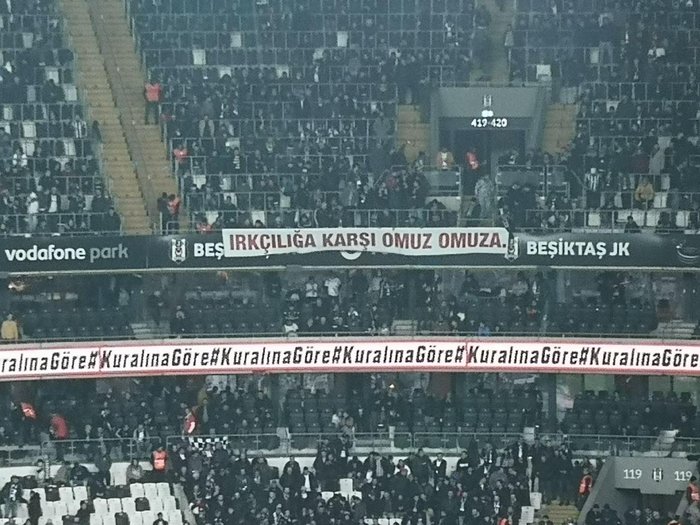 Beşiktaş'ın Trabzonspor'u Süper Lig 23. hafta maçında sahasında konuk ettiği karşılaşma öncesi tribünleri dolduran siyah beyazlı taraftarlar açtıkları pankartlar ve yaptıkları tezahüratlarla Almanya'nın Hanau kentinde yaşanan ırkçı terör saldırısını kınadı.