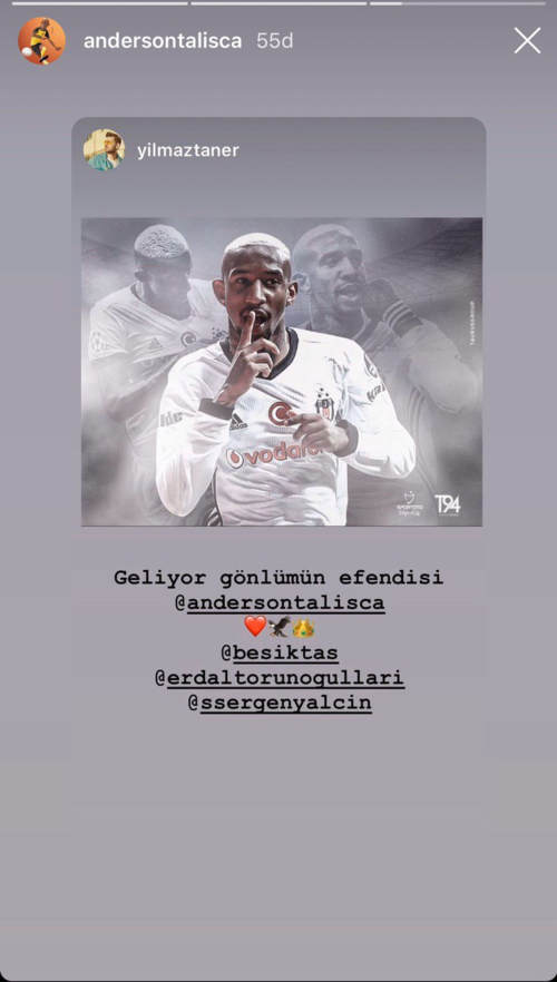 Bir taraftarın kendi fotoğrafının üzerine "Geliyor gönlümün efendisi" yazıp, Erdal Torunoğuları ve Sergen Yalçın'ı etiketlediği gönderiyi repost eden 26 yaşındaki yıldız, "Acaba geri mi dönüyor?" sorusunu akıllara düşürdü.