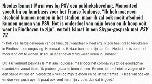 Taraftarlardan çok fazla destek gördüm ve bunu gerçekten takdirle karşıladım. Eindhoven'a yeniden dönmek isterim. Özellikle kariyerimi bitirdiğimde. Hollanda, yaşamak için çok güzel bir ülke. Her durumda oraya geri dönmek istiyorum."