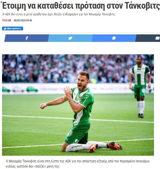Muamer Tankovic geçtiğimiz ocak ayından bu yana, AEK'nın kanat transferi listesinde yer alıyor.