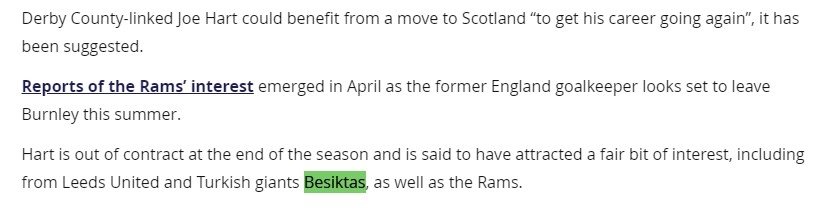 Öte yandan Joe Hart'ın, Derby County ve Leeds United'ın da gündemine olduğu ifade edildi.