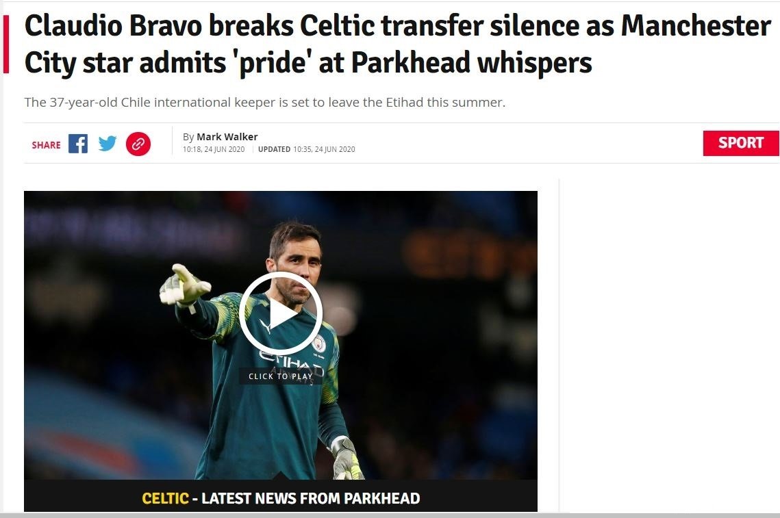 2016 yılında İngiliz ekibi Manchester City'e gelen Şilili kaleci Claudio Bravo, sezon sonunda takımıyla yollarını ayırıyor. Tecrübeli eldivenle ilgili birçok iddia ortaya atılmıştı. Bunlardan biri de kaleci arayışında olan Galatasaray ve Beşiktaş'ın, Bravo ile ilgilendiği yönündeydi.