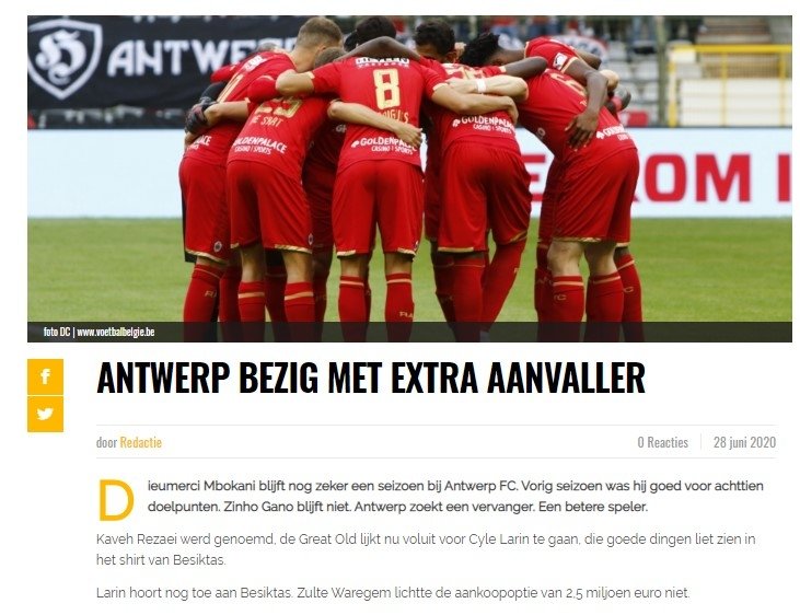 Voetbalbelgie.be adlı internet sitesinde konu ile ilgili yer alan haberde kulübün gelecek sezon Zinho Gano ile yola devam etmek istemediği ve Larin'i buraya monte etmeyi hedeflediği aktarıldı.