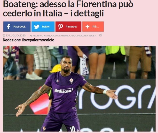 Beneventolu yetkililerin sezonun sona ermesiyle beraber Boateng için Fiorentina kulübüne satın alma opsiyonlu kiralama teklifi yapacağı kaydedildi.