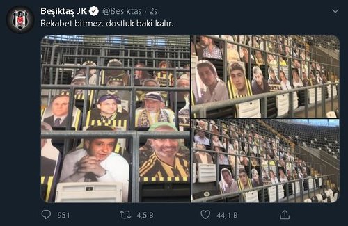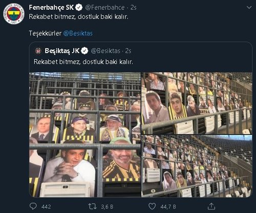 Fenerbahçe Kulübünün sosyal medya hesabından bu paylaşıma, "Rekabet bitmez, dostluk baki kalır. Teşekkürler Beşiktaş." yanıtı verildi.