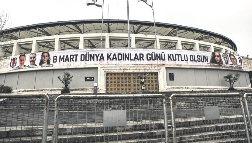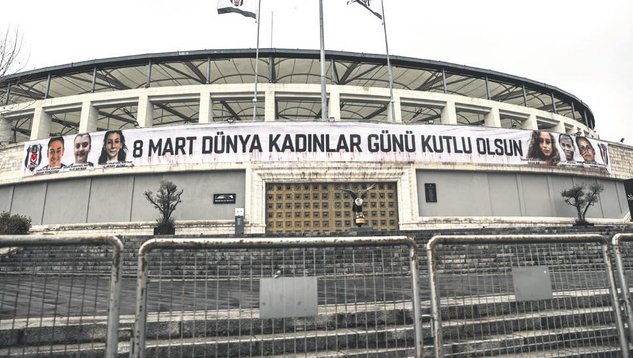 Beşiktaş Kulübü, 8 Mart Dünya Kadınlar Günü için stadyuma özel bir pankart astı.