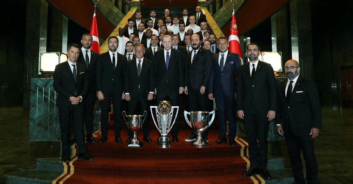 CumhurbaşkanıRecep Tayyip Erdoğan, 2020-2021 sezonu Süper Lig şampiyonu olan Beşiktaş futbol takımı yönetici, teknik heyet ve oyuncularını Cumhurbaşkanlığı Külliyesi'nde kabul etti. Beşiktaş Başkanı Ahmet Nur Çebi ve teknik direktör Sergen Yalçın'ın da yer aldığı kabulde Gençlik ve Spor Bakanı Dr. Mehmet Muharrem Kasapoğlu da bulundu. Ziyarette Cumhurbaşkanı Erdoğan'a, hem Süper Lig hem de Türkiye Kupası götürüldü. Samimi bir havada gerçekleşen görüşmede Erdoğan, siyah-beyazlı yönetim, teknik ekip ve futbolcuları tebrik etti. Kabulün fotoğrafları hem Cumhurbaşkanlığı hem Beşiktaş'ın sitesinden servis edildi.