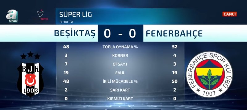 Derbide en dikkat çeken istatistik ise ofsayt oldu. Fenerbahçe maçta sadece 3 kez ofsayta takıldı, Beşiktaşlı oyuncular ise 7 kez ofsayta düştü.
