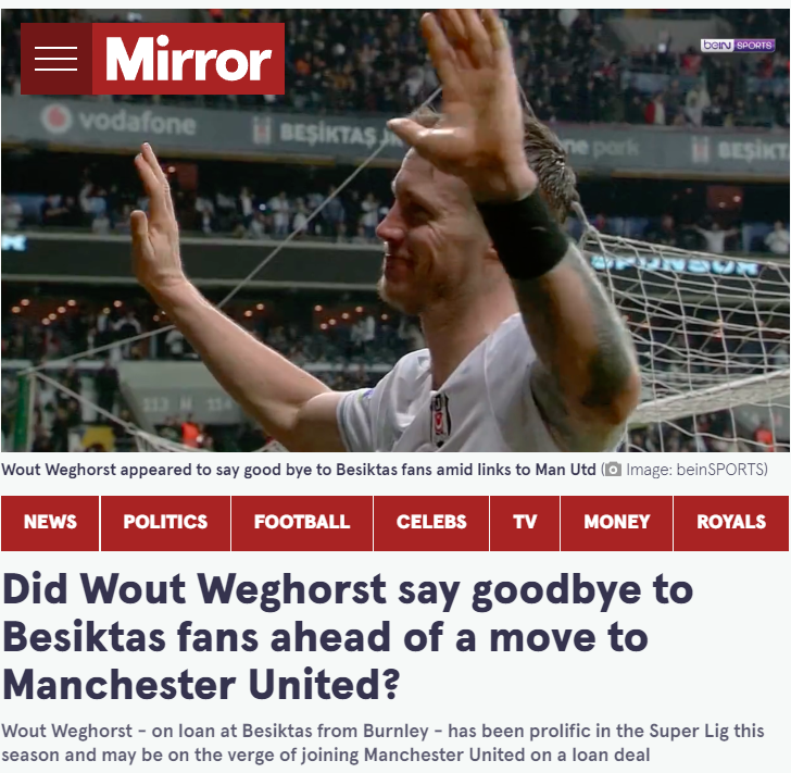 Wout Weghorst says goodbye to Besiktas fans today as part of his goal celebration vs. Kasimpasa. The Dutch striker is reportedly set to join Man Utd on loan ➡️ pic.twitter.com/dFx5TL31OU