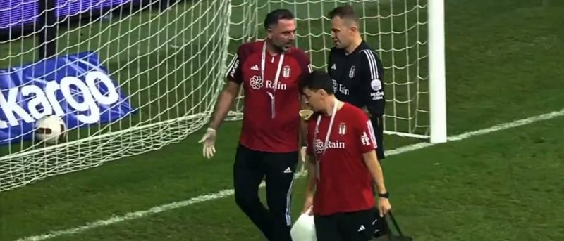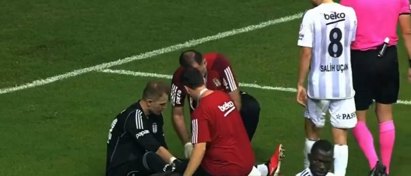 Siyah-beyazlılarda kaleci Mert Günok 29. dakikada kendini yere bıraktı. Sağlık ekiplerinin ilk müdahaleyi yaptığı deneyimli file bekçisi oyuna devam edemedi.