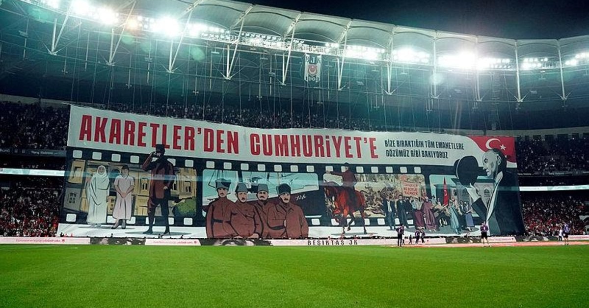 Siyah-beyazlı taraftarlar, Türkiye Cumhuriyeti'nin 100. yılına özel koreografi hazırladı. Mustafa Kemal Atatürk, Atatürk'ün annesi Zübeyde Hanım, kız kardeşi Makbule Hanım ve silah arkadaşlarının yer aldığı görselde, "Akaretler'den Cumhuriyet'e. Bize bıraktığın tüm emanetlere gözümüz gibi bakıyoruz" ifadeleri yer aldı.