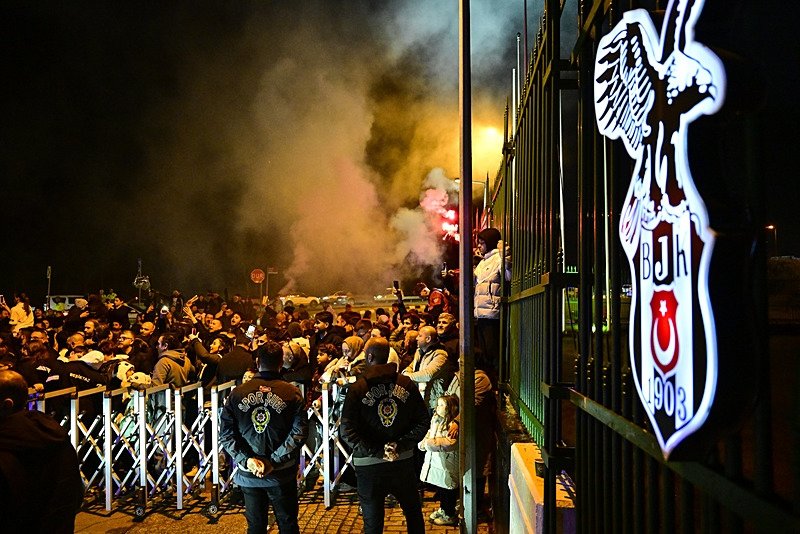 Derbi sonrası Beşiktaş taraftarları Nevzat Demir tesislerine akın etti. Takım otobüsünü meşalelerle karşılayan taraftarlar, oyunculara sevgi gösterilerinde bulundu.