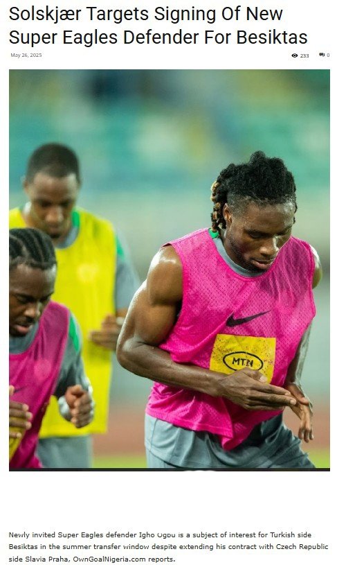 Nijerya basını, Beşiktaş'ın Çekya ekibi Slavia Prag'ın Nijeryalı stoperi Igoh Ogbu ile ilgilendiğini açıkladı. Own Gol Nigeria kaynaklı haberde, 25 yaşındaki futbolcunun kulübüyle yeni sözleşme imzaladığı ancak siyah-beyazlıların 5 milyon Euro bonservis bedeli karşılığında bu transferi gerçekleştirebileceği yazıldı.