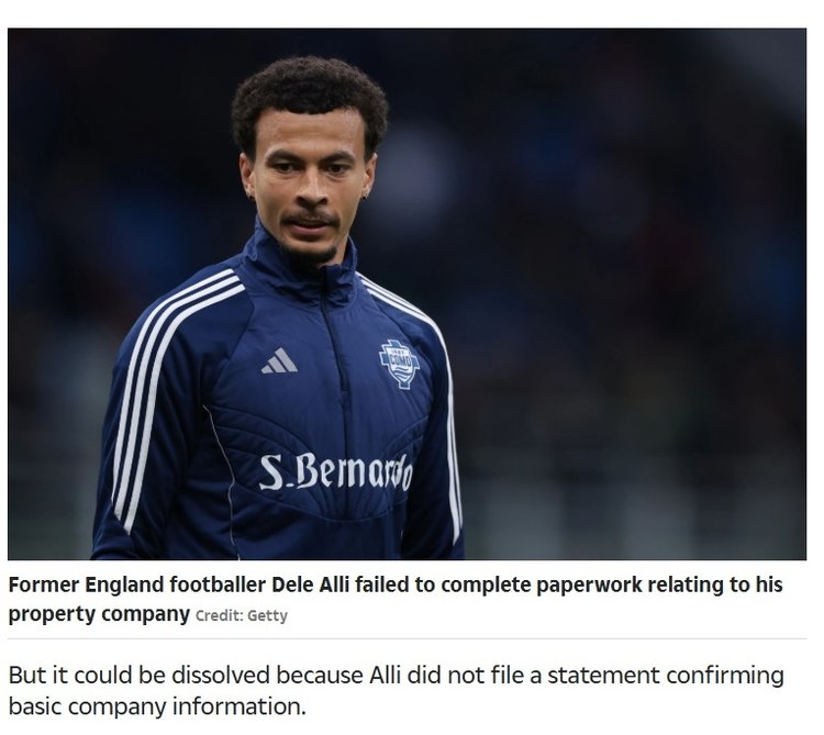 29 yaşındaki ismin, emlak kiralama şirketinin değeri 1.8 milyon sterlin. Ancak Dele Alli'nin temel şirket bilgilerini doğrulayan bir açıklama sunmaması nedeniyle şirket feshedilebilir.