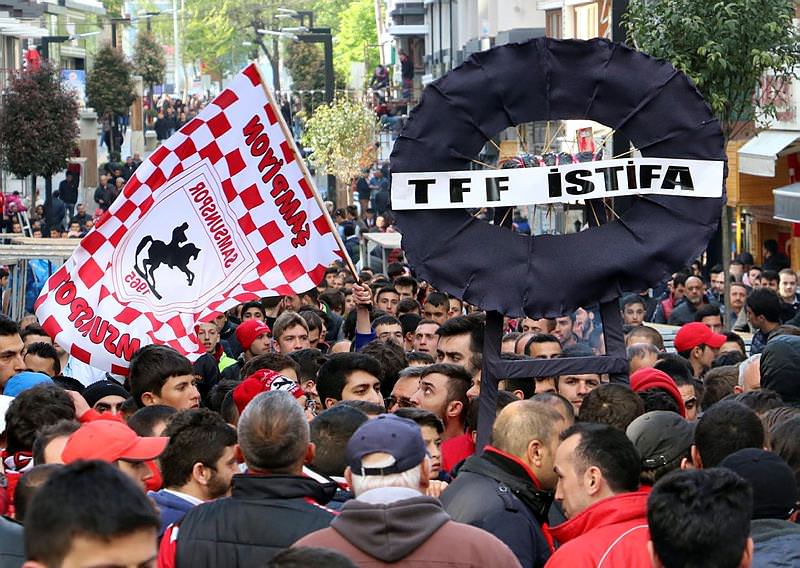 Futbolcu borcu nedeniyle FIFA talimatı doğrultusunda Türkiye Futbol Federasyonu'nun (TFF) Samsunspor'a verdiği 3 puan silme cezası, taraftarın tepkisini çekti. Samsunspor taraftar grubu bugün bir protesto yürüyüşü düzenledi. Taraftarlar üzerinde TFF armasının, TFF Başkanı Yıldırım Demirören'in fotoğrafı baş aşağı bir şekilde yer aldığı "Çifte standardı kınıyoruz" yazılı pankart taşıdı. 'Artık güçlüler değil adalet kazansın. Tek rakibimiz TFF' yazılı dövizlerin taşındığı yürüyüş sırasında siyaha boyanmış bir piknik tüpü de bulunduran taraftarlar, "Yeter Yıldırım Demirören" diye slogan attı.
