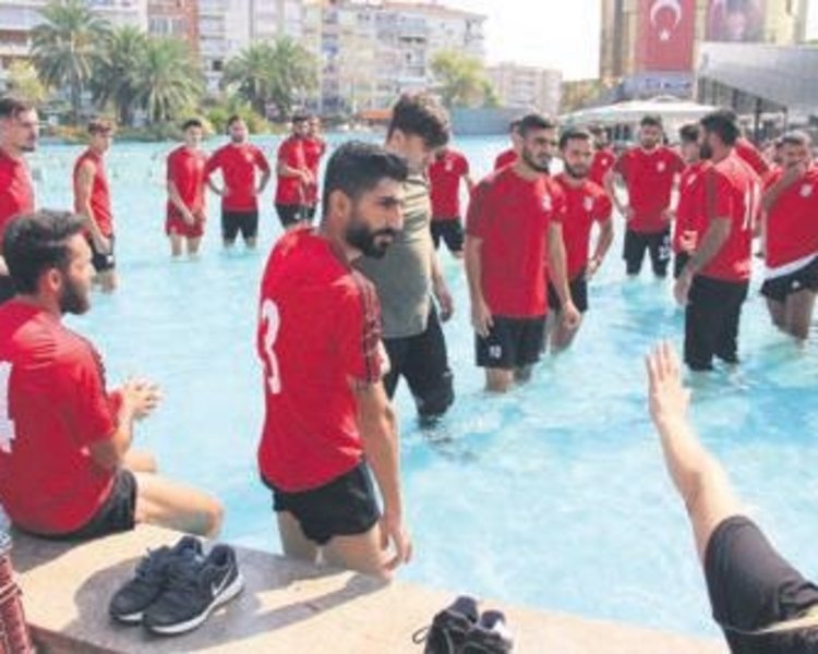 BAL ekibi Aydınspor 1923 takımının antrenman sırasında suları kesildi. Futbolcular durumu protesto etmek için süs havuzuna girdi!