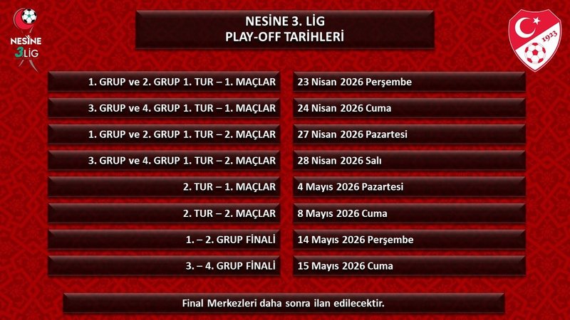 Türkiye Futbol Federasyonu (TFF), 1. Lig, 2. Lig ve 3. Lig'de play-off tarihlerini duyurdu. İşte o tarihler...