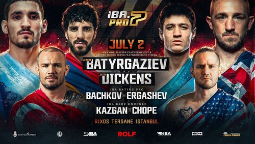 İstanbul, 2 Temmuz'da profesyonel boks ve bare-knuckle maçlarının yer aldığı uluslararası organizasyona sahne olacak. Batyrgaziev, Dickens'a karşı unvan koruma maçına çıkarken, Murat Kazgan ve Chope'yle karşılaşacak.