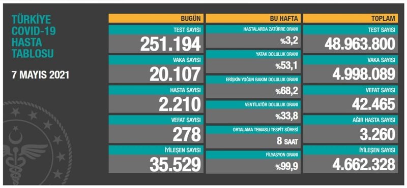 Türkiye'de son dakika corona virüsü gelişmelerini, vaka ve ölüm sayılarını her akşam paylaşan Sağlık Bakanı Dr. Fahrettin Koca, 7 Mayıs günü vaka ve ölüm sayıları hakkında güncel bilgileri yaptığı son dakika açıklaması ile duyurdu.