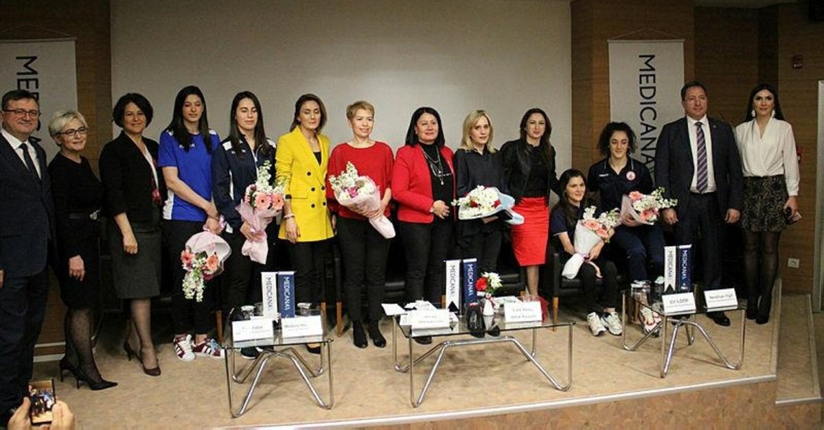 Çeşitli branşlardaki kadın milli sporculardan Nur Tatar, Meltem Hocaoğlu Akyol, Elif İldem ve Neslihan Yiğit, 8 Mart Dünya Kadınlar Günü etkinlikleri kapsamında düzenlenen söyleşiye katıldı.