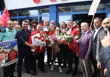 Dünya Kadınlar Boks Şampiyonası 69 kiloda altın madalya kazanarak göüsümüzü kabartan Busenaz Sürmeneli, Trabzon'da çiçeklerle karşılandı.
