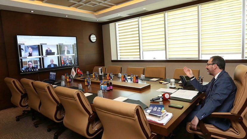 Gençlik ve Spor Bakanı Dr. Mehmet Muharrem Kasapoğlu, Türkiye Futbol Federasyonu (TFF) Başkanı Nihat Özdemir, Türkiye Basketbol Federasyonu (TBF) Başkanı Hidayet Türkoğlu, Türkiye Voleybol Federasyonu (TVF) Başkanı Mehmet Akif Üstündağ, Türkiye Hentbol Federasyonu (THF) Başkanı Bilal Eyüboğlu, Kulüpler Birliği Vakfı Başkanı Mehmet Sepil ve Spor Hizmetleri Genel Müdürü Mehmet Baykan ile video konferans aracılığı ile toplantı düzenledi. Toplantıda, liglerin geleceği, sporcu sağlığı ile ilgili alınması gereken tedbirler, kulüplerin bu süreçte yaşayacağı finansal sorunlar ve halk sağlığı konuları ele alındı.