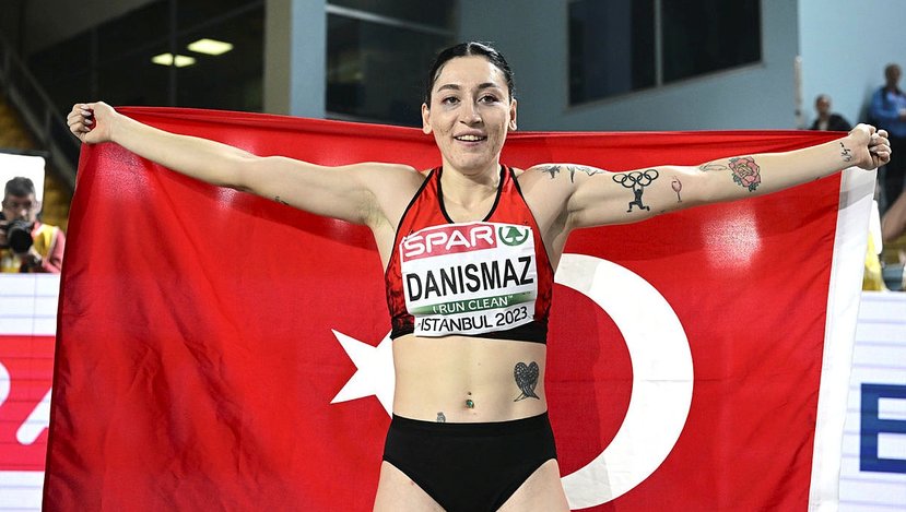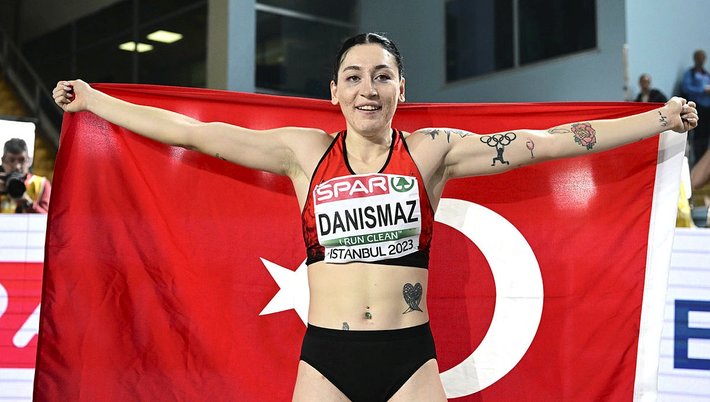 İstanbul Ataköy Atletizm Salonu'nda devam eden şampiyonanın 3. gününde üç adım atlama finalinde 14,31 metrelik atlayışıyla Türkiye rekoru kıran Danışmaz, Avrupa şampiyonluğunu elde etti. Gençlik ve Spor Bakanı Mehmet Muharrem Kasapoğlu'nun kutladığı Tuğba, madalyasını depremzedelere armağan etti.