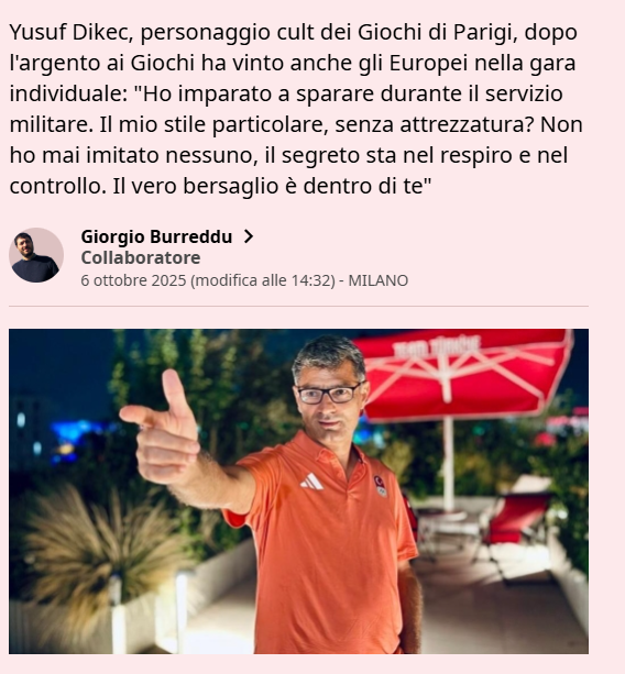 Türk atıcılığının gururu Yusuf Dikeç, İtalya'nın en saygın spor gazetelerinden La Gazzetta dello Sport'a özel bir röportaj verdi. Olimpiyatlarda kazandığı gümüş madalyenin ardından Avrupa Şampiyonası'nda da zirveye çıkan milli sporcu, sade yaşamı, disiplini ve kendine özgü tarzı hakkında açıklamalarda bulundu.