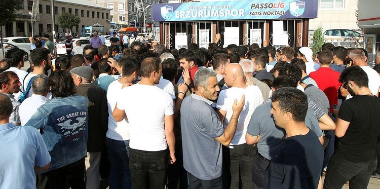 Erzurumspor'un Kent Meydanı'ndaki passolig ofisi en yoğun günlerini yaşıyor. 17 yıl sonra Süper Lig'e çıkan Dadaş'ta, pazar günkü Beşiktaş maçına bilet almak isteyen taraftarlar, sabah saatlerinden itibaren kuyruk oluşturdu. Taraftarlar zaman zaman izdihama da neden oldu.
