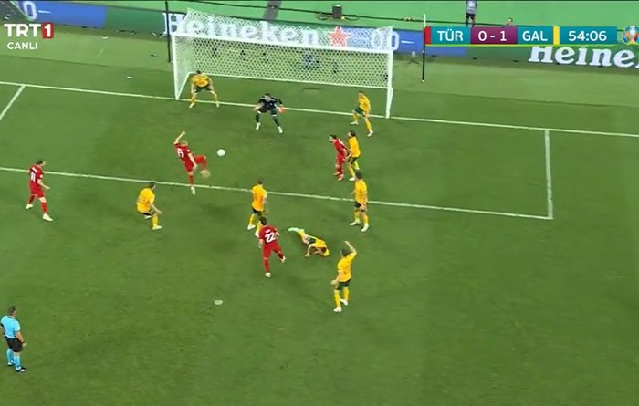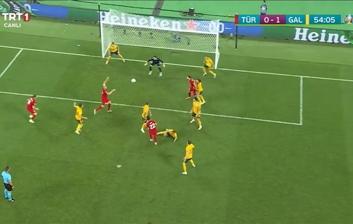 EURO 2020 A Grubu ilk hafta maçında A Milli Takım'ımız Galler ile karşı karşıya geldi. Bakü'de oynanan maçta milliler, ilk yarıda yediği golle 1-0 geriye düştü. İkinci yarıya daha etkili başlayan milli takım, maçın 55. dakikasında Galler kalesine etkili geldi. Köşe vuruşundan tehlikeli bir pozisyon yakalamamıza rağmen Burak Yılmaz, kalenin hemen önünden topu dışarıya vurdu.