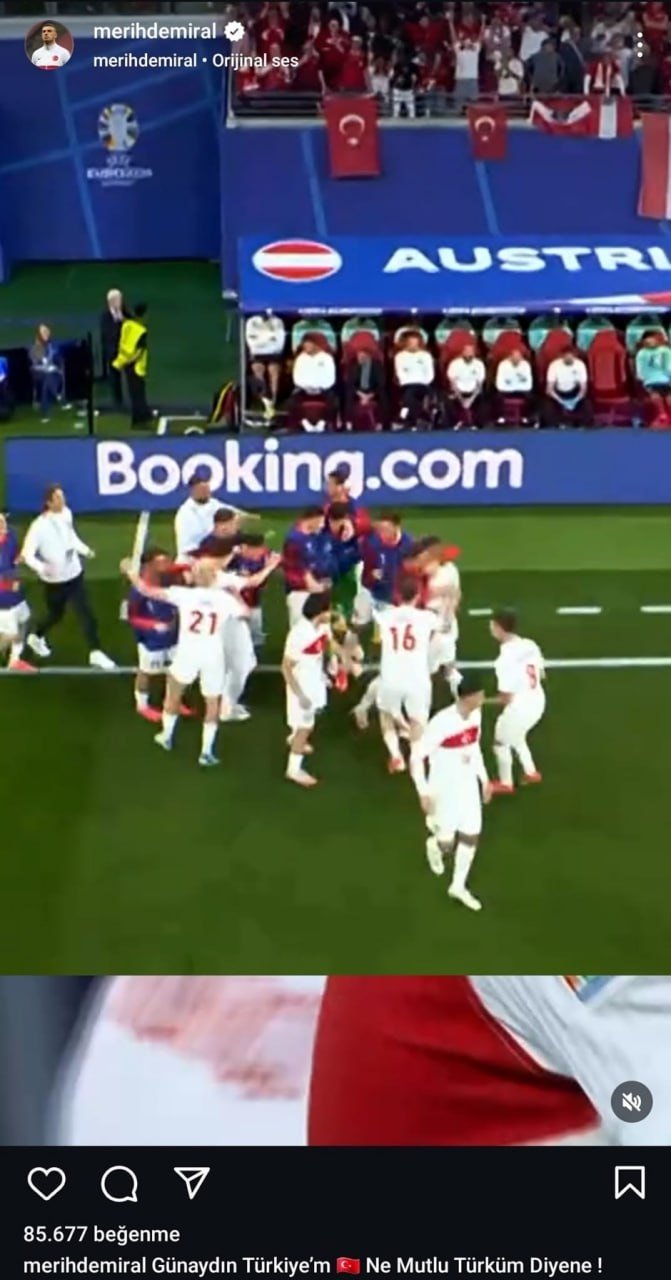 Merih Demiral, UEFA'nın kendisine soruşturma başlatması sonrası gollerinden kesitler paylaştı ve "Günaydın Türkiye'm. Ne Mutlu Türküm Diyene" ifadesini kullandı.