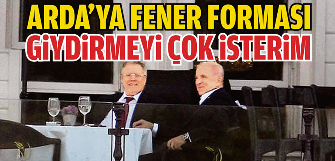 Ünal Aysal: Arda henüz karar vermedi. Kalsın isteriz. Giderse de saygı duyarızFenerbahçe Başkanı Yıldırım'ın, Galatasaray Başkanı Aysal'a "Arda Turan'ın durumu ne oldu? Galatasaray'da kalıyor mu, yoksa Avrupa'ya mı gidiyor?" sorusunu yönelttiği; Ünal Aysal'ın da "Arda henüz bir karar verebilmiş değil. Fatih hocamız ve ben, onun Galatasaray'da kalmasını çok istiyoruz. Ama Arda'nın alacağı karara da saygı duymak zorundayız!" cevabını verdiği belirtildi. Aysal'ın bu sözleri üzerine Aziz Yıldırım'ın da "Gitmesi Türk futbolu için bir kayıp olur. Eğer Galatasaray'dan ayrılırsa, ona Fenerbahçe formasını giydirmeyi çok isterim" dediği öğrenildi.