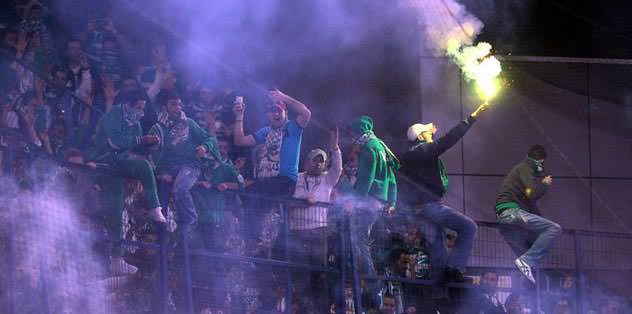 Bursaspor taraftarı maçın başlamasıyla birlikte bulundukları yerde maytap patlatıp, meşale yaktılar. Fenerbahçe forması da ateşe verildi.