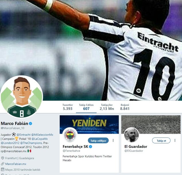 Fenerbahçe'ye prensipte anlaşan 29 yaşındaki orta saha oyuncusu, sosyal medya hesabından sarı-lacivertli kulübü takip etti. Fenerbahçeli taraftarlar da yıldız oyuncuya sıkı markaj uyguluyor. Taraftarlar, Marco Fabian'a internet üzerinden Fenerbahçe'ye gel çağrısı yaparak yıldız oyuncunun ikna sürecinde yardımcı oluyor.