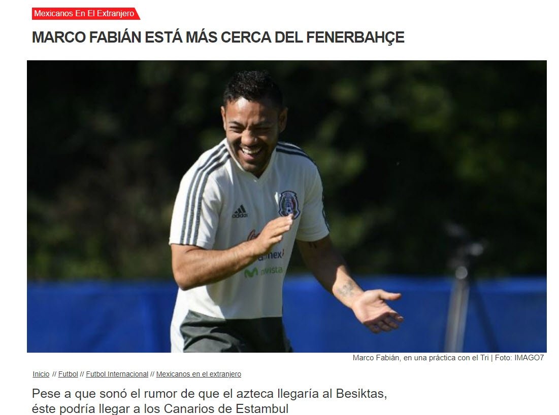 Portekiz'in Record gazetesi, Marco Fabian'ın Beşiktaş ile yaptığı görüşmelere rağmen Fenerbahçe ile imzalama kararı aldığını okuyucularını duyurdu.