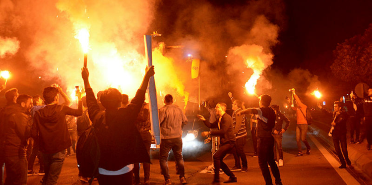 Havaaalanı çıkışında taraftar meşalelerle yolu kapatarak takım otobüsünün önünde tezahüratta bulundu. Fenerbahçe kafilesi otobüse binerek daha sonra konaklayacağı otele hareket etti.