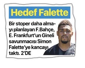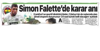 Fenerbahçe, Gineli stoper Simon Falette'yi resmen renklerine bağladı. Dün İstanbul'a gelen 27 yaşındaki savunmacı, akşam saatlerinde kulübe geçip sarılacivertli yöneticilerle görüştü. Alman 1. Lig (Bundesliga) ekiplerinden Eintrach Frankfurt'tan sezon sonuna kadar satın alma opsiyonuyla kiralanan Gineli stoper, gece sarı- lacivertli formayı üzerine geçirip resmi sözleşmeye imza attı. Falette'nin bugün Antalya'daki kampa katılması bekleniyor.