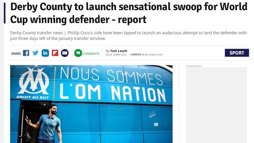 Ada medyasında yer alan habere göre Fenerbahçe'nin eski teknik direktörlerinden Philip Cocu'nun, mevcut takımı Derby County'de oyuncuyu görmek istediği belirtilirken, Cenk Tosun'un da formasını terlettiği Crystal Palace'ın, Adil Rami için devrede olduğu belirtildi.